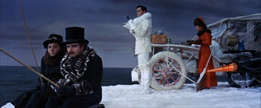 The race begins and takes us into multiple cities, cross-country and cross-continent paced in a heavily competitive adventure. As they each try to stay ahead in the race, they occasionally meet hilarious challenges both on and off the road. This leads to everything from an Old West mega bar brawl to a polar bear encounter on a floating ice block to bare-chested saber fighting to pie fights and even imprisonment. One item I failed to mention earlier (SPOILER ALERT!), Lemmon actually plays another role- one he fails to get properly credited for… Prince Hapnick. This additional role is hysterical and displays more of Lemmon’s extraordinary acting gifts. These dual role scenes of Fate and Hapnick are Edwards’ salute to The Prisoner of Zenda (1937). Throughout, Maggie Dubois struggles to assert her female independence while reporting the race updates via pigeon carrier. As you might expect of any classic romantic comedy, the feisty and beautiful Dubois and our debonair Leslie fall for each other despite themselves.