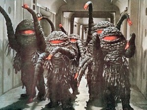 Recently, I attended a fun and nostalgic cinematic treat. I live in a college town in Kansas, where the opportunities for enjoying classic cinema in a public venue are not exactly frequent. Kansas Public Radio’s Retro Cocktail Hour hosted a duo of drive-in classics for “Killer Blob Night.” (KPR’s Retro Cocktail Hour is a weekly radio show devoted to the Space Age Pop revival genre. Picture a “Mad Men” happy hour soundtrack.) The Double Feature included the oozing, pulsating, flesh-eating Kinji Fukasaku’s THE GREEN SLIME (1968) and Mario Bava’s (uncredited) CALTIKI, THE IMMORTAL MONSTER (1959). The experience that followed was an audience verbally engaged akin to “Mystery Science 3000” with shout-out commentary, laughter and howls at every campy gaffe.