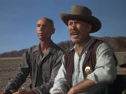Why bring up all this political behind-the scenes perspectives on Ford, Wayne, and Bond? It highlights the very complicated dynamics of these three and of this period in history. As such, during this time of filmmaking, with so much tension and restraint under the surface for a man who valued his independence above all else, Ford leaned into what he did well. The thoroughly American art form of westerns. But as we move forward, glimmers of Ford’s post-war ponderings can be seen in a dimmer view. By the 1950s and 1960s the power shift was flipping from “uncle Pappy” to his star son; but Duke never forgot who was responsible for his career.
