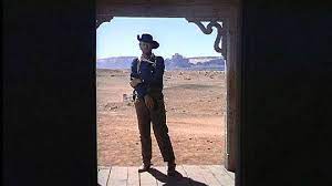 He also circles back to an early scene where Ethan damns a dead Comanche by shooting his eyes out, forcing him to “wander forever between the winds.” By the end of the film, the family is reunited, whole again. Except for Ethan, who stands alone on the porch, still the outsider. Despite his redemptive act of rescuing Debbie after a decade of searching, he does so with the intention of murdering her, then changes his mind at the very last minute. He is the one who is damned to wander forever between the winds. This is confirmed as John Wayne poses in a Harry Carey style of clasping the elbow and the song concludes…