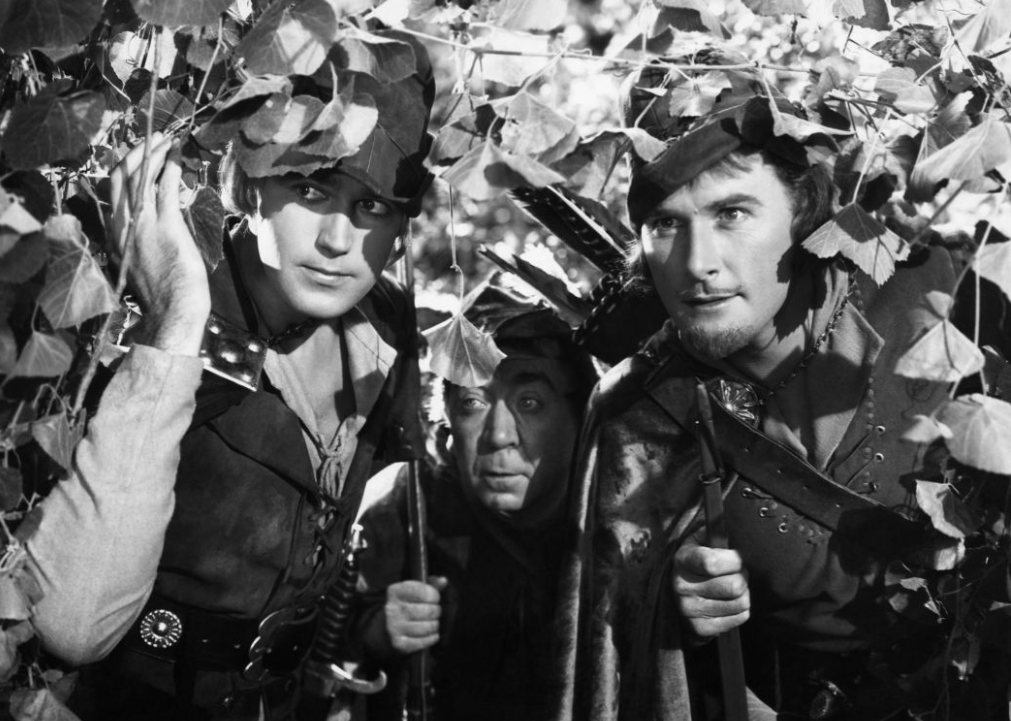 – Look for the action sequences that Michael Curtiz enhanced (such as the merry men dropping from the trees, use of shadows, etc.)