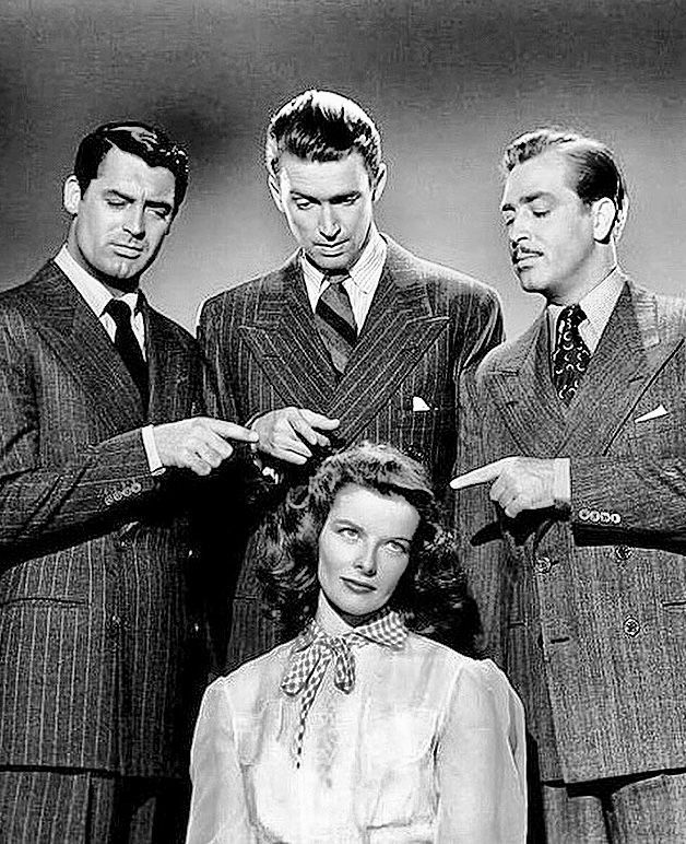 Produced by the Theatre Guild, “The Philadelphia Story” opened March 28, 1939, at the Shubert Theatre in New York City. Barry was inspired by a friend’s wife, socialite Helen Hope Montgomery Scott, for the main character, Tracy Lord. In lieu of a salary, Kate financially backed the play for a percentage of the profits. The stage production co-starred Joseph Cotten, Van Heflin, Shirley Booth, and Dan Tobin. With a successful, full year run on Broadway and money gifted to her by friend Howard Hughes, Katharine secured the film rights. She negotiated a contract with MGM for $250,000 that allowed her veto rights for the director (George Cukor), producer (Joseph L Mankiewicz), screenplay (Donald Ogden Stewart), and cast, which assured her spot in the lead. She wanted Clark Gable and Spencer Tracy, the biggest stars at that time, for the male leads, but they turned it down. The roles ultimately went with Cary Grant (1904 – 1986) and James Stewart (1908 – 1997).